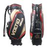 【キャスター付き】9型キャディバッグ カタナゴルフのフラッグシップ「TG-01シリーズ」からインスパイアされたキャディバッグが登場。 キャスター付きでゴルフ場はもちろん、練習場の移動も快適に。 カーボン調のエナメル素材と、シボ加工を施された上質な合成皮革の組み合わせが重厚感を演出。 ゴルフクラブとトータルで揃えたくなるアイテムに仕上がりました。