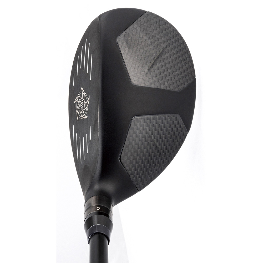 フェアウェイウッドと同様、ステンレス素材のT字型ボディをカーボンで覆ったカタナ独自の「Tフレーム・インパクト製法」を採用することでヘッドがキャビディ構造となり、スイートスポットが拡大。低重心・深重心設計によって生み出される風に負けない高・強弾道は、圧倒的な飛距離アップに貢献します。