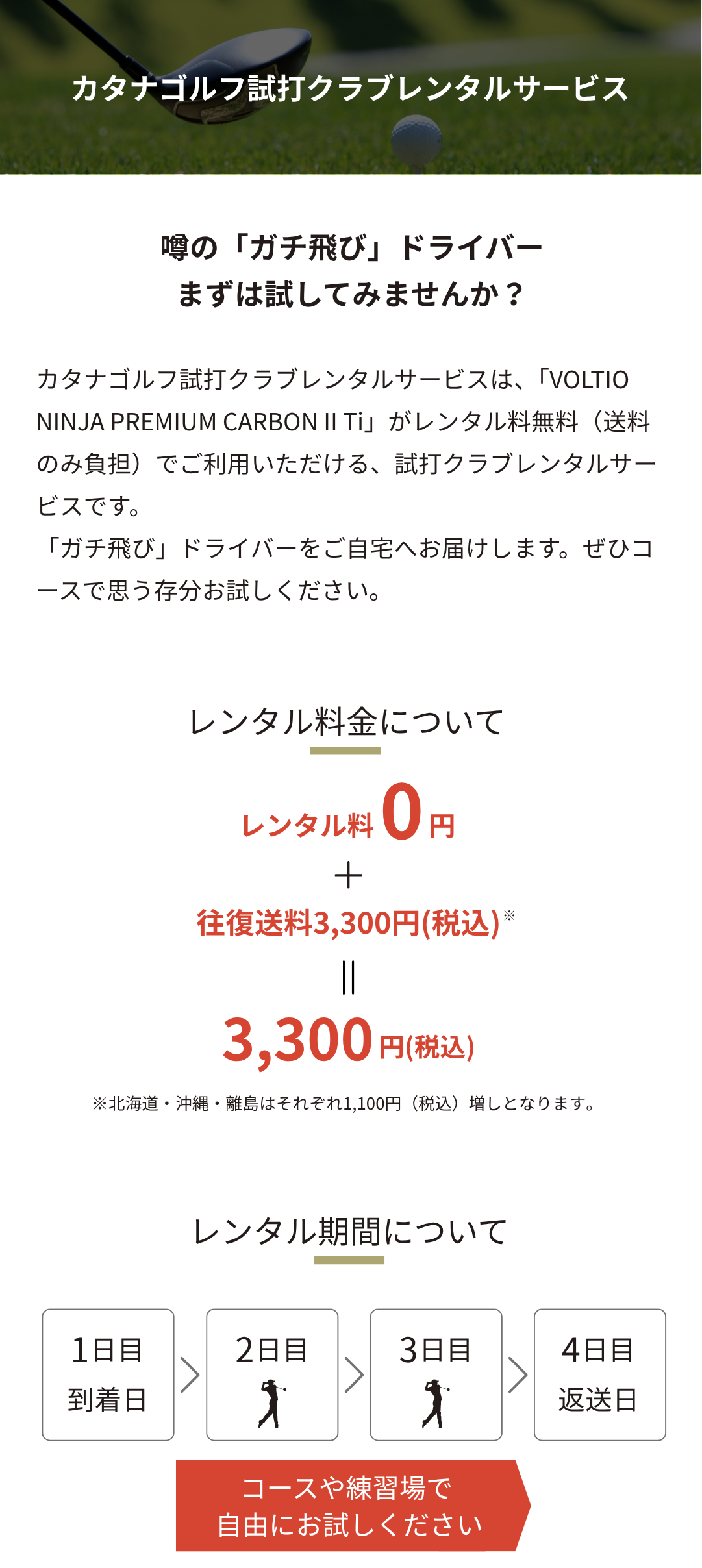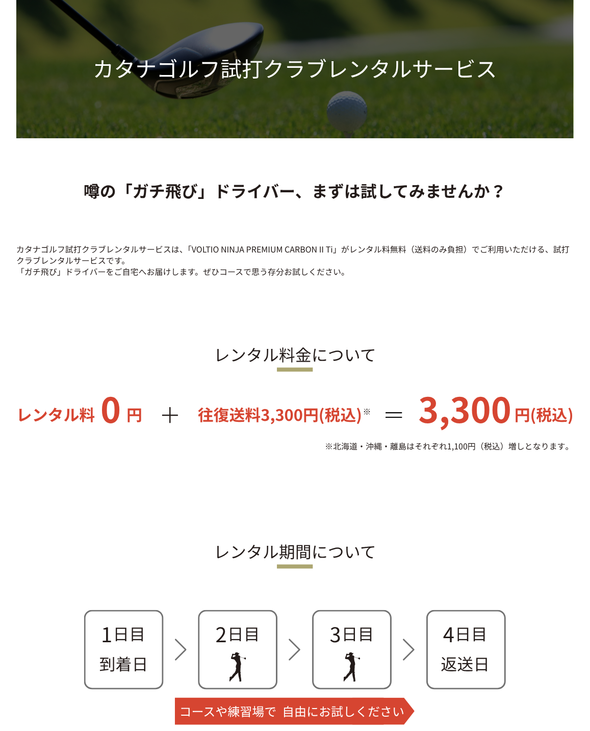 本サービスは、カタナゴルフ試打クラブレンタルサービス(以下「本サービス」)の利用者に対して、試打・レンタル用のゴルフクラブ(以下「レンタルクラブ」)を貸し出すサービスです。